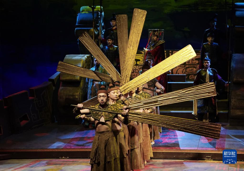 3月29日,演员在进行大型室内史诗演出——《长城》的排演。