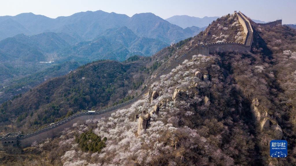 春日的京郊,山花遍野,与长城相映成景,引人入胜。
