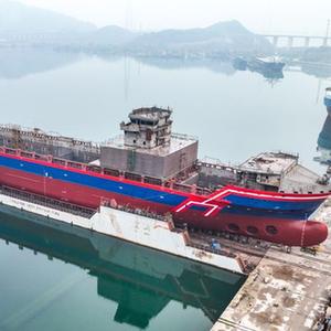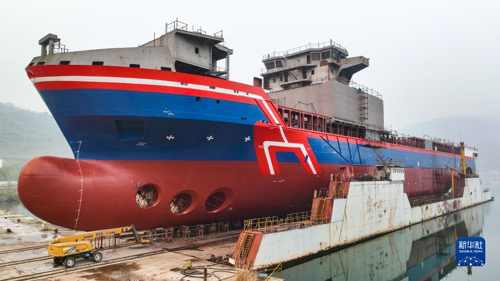 3月29日,万吨级远洋通信海缆铺设船“龙吟9号”在江西九江市瑞昌市下水。