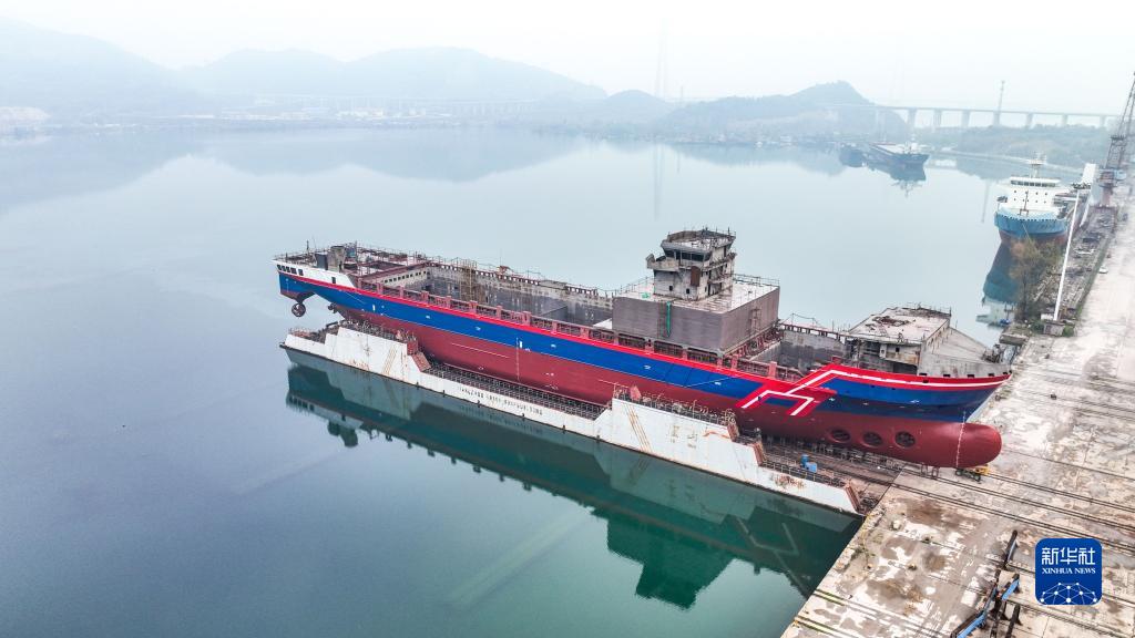 3月29日,万吨级远洋通信海缆铺设船“龙吟9号”在江西九江市瑞昌市下水。