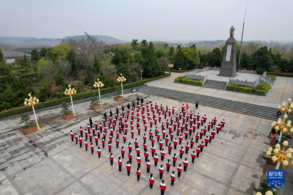 3月30日,学生在皖东烈士陵园祭奠先烈(无人机照片)。