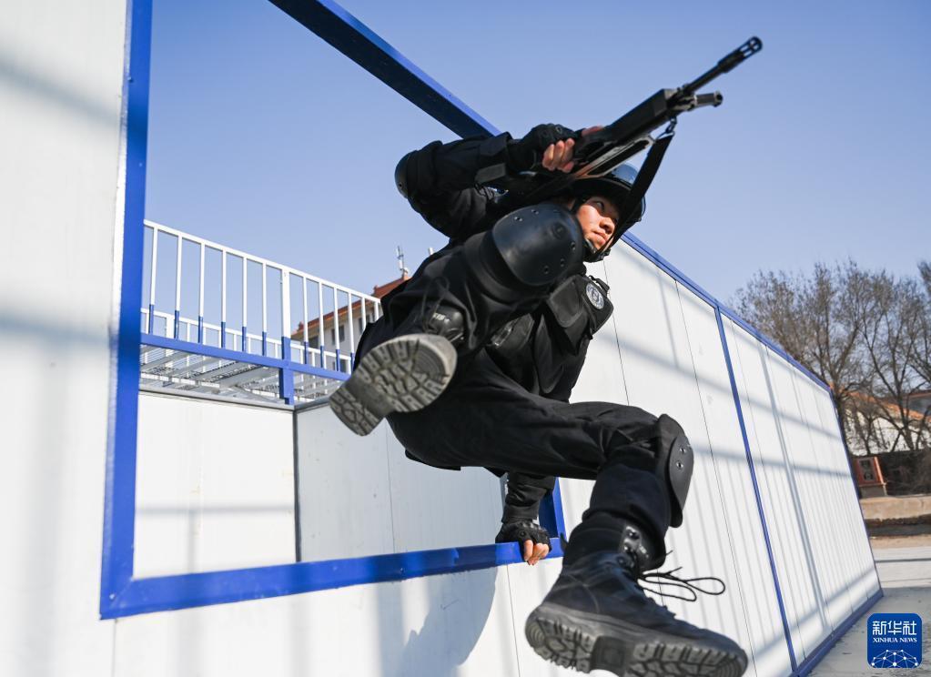 3月30日,包头公安处特警在进行训练。