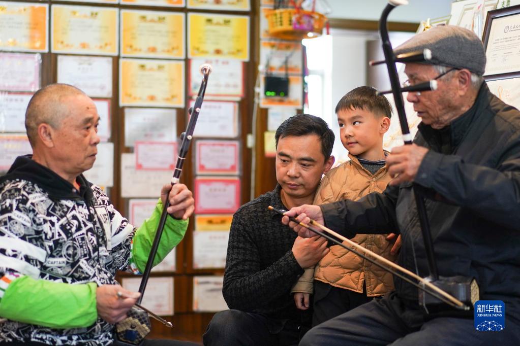 识谱、拉弦样样不懂,钱福基四处讨教,然后回家摸索练习,慢慢掌握二胡演奏技巧。受他的影响,儿子钱建平也爱上了二胡演奏。生活条件越来越好,孙子钱钧在女儿钱智娴5岁时便开始请专业二胡老师授课,父女俩一起学习,共同提高。2019年,钱智娴获得第四届“敦煌杯”中国二胡演奏比赛非职业少年B组金奖。如今,钱钧7岁的儿子钱智臣以姐姐为榜样,也开始练习二胡。