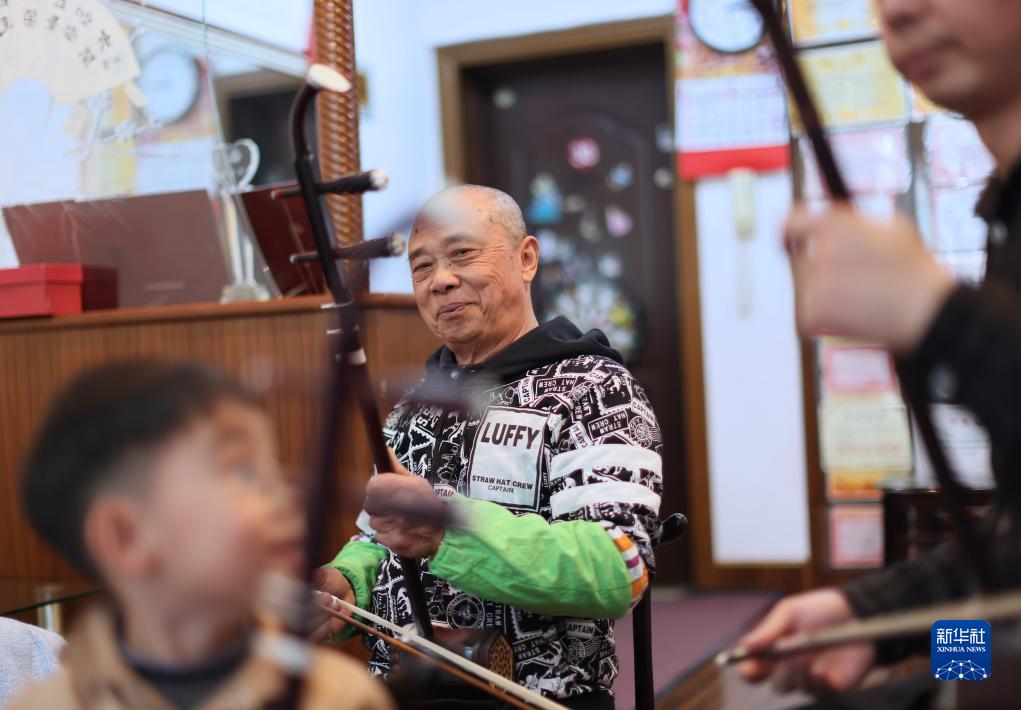 识谱、拉弦样样不懂,钱福基四处讨教,然后回家摸索练习,慢慢掌握二胡演奏技巧。受他的影响,儿子钱建平也爱上了二胡演奏。生活条件越来越好,孙子钱钧在女儿钱智娴5岁时便开始请专业二胡老师授课,父女俩一起学习,共同提高。2019年,钱智娴获得第四届“敦煌杯”中国二胡演奏比赛非职业少年B组金奖。如今,钱钧7岁的儿子钱智臣以姐姐为榜样,也开始练习二胡。
