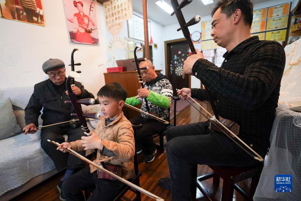 识谱、拉弦样样不懂,钱福基四处讨教,然后回家摸索练习,慢慢掌握二胡演奏技巧。受他的影响,儿子钱建平也爱上了二胡演奏。生活条件越来越好,孙子钱钧在女儿钱智娴5岁时便开始请专业二胡老师授课,父女俩一起学习,共同提高。2019年,钱智娴获得第四届“敦煌杯”中国二胡演奏比赛非职业少年B组金奖。如今,钱钧7岁的儿子钱智臣以姐姐为榜样,也开始练习二胡。