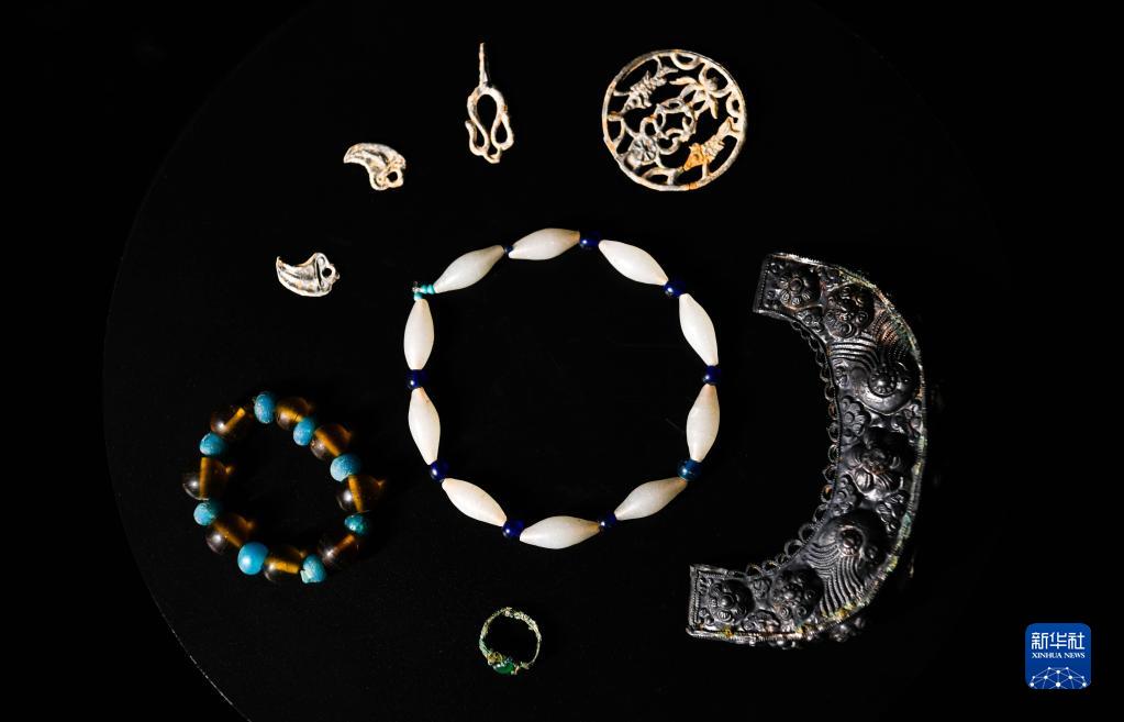 贵州贵安新区大松山墓群出土的精美装饰品(3月30日摄)。