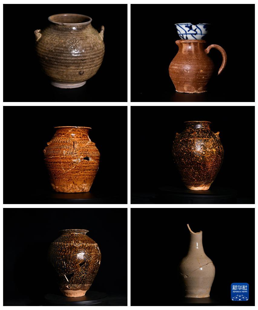 贵州贵安新区大松山墓群出土的陶瓷类文物(拼版照片,3月30日摄)。