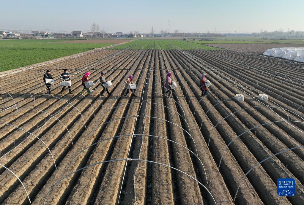 春日和暖,素有“冀东生姜之乡”美誉的河北省唐山市丰润区新军屯镇的农民抢抓农时种植生姜,田间呈现出一派繁忙的春播图景。据介绍,今年该镇生姜种植面积预计达4万多亩。
