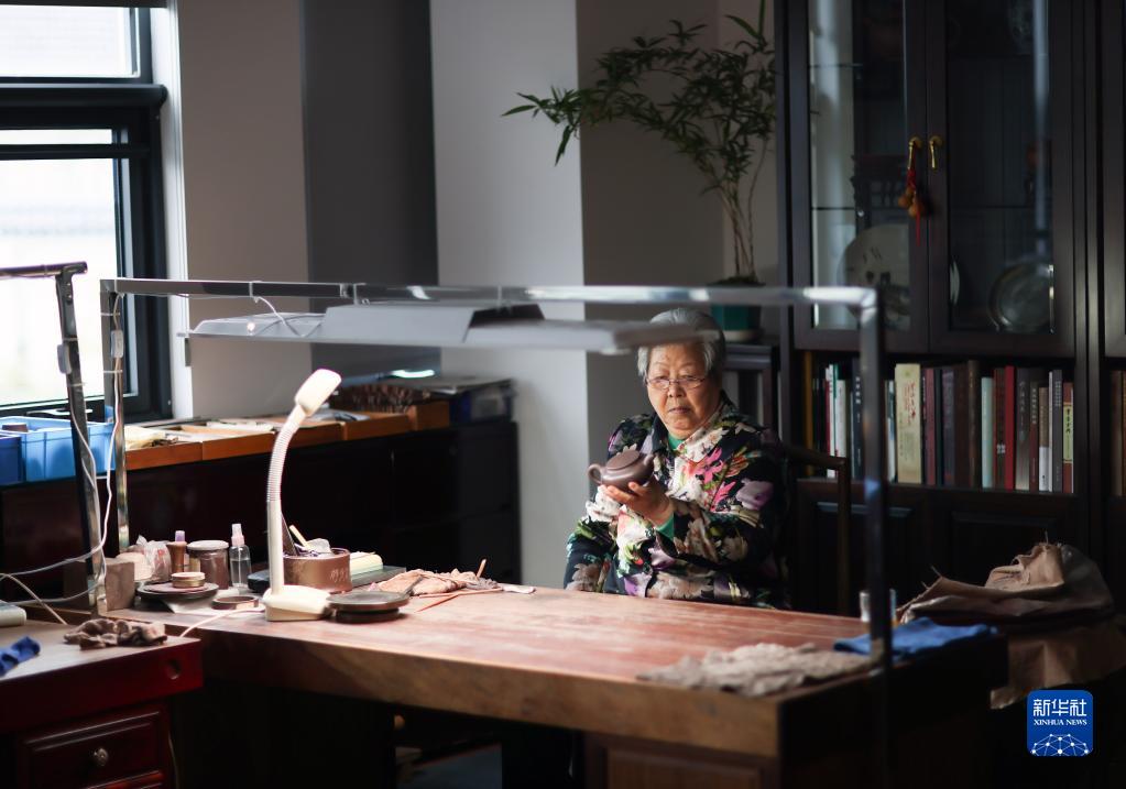 江苏省无锡市宜兴市素有“中国陶都”美誉,拥有一批优秀的紫砂艺人,83岁的中国陶瓷艺术大师曹婉芬是其中的杰出代表。她出生于宜兴市蜀山古南街陶业世家,从小受紫砂艺术熏陶。1955年,曹婉芬拜师紫砂名家朱可心,并得到裴石民、王寅春、顾景舟等大师传授技艺。近70年来,她潜心创作,食古而吐秀,不仅擅长紫砂花器,熟练掌握光器、筋纹器,还能制作一整套做壶工具。曹婉芬的紫砂作品在国际及全国陶瓷评比中屡屡获奖。在她的影响和传授下,后代们也从事紫砂行业并取得成就。