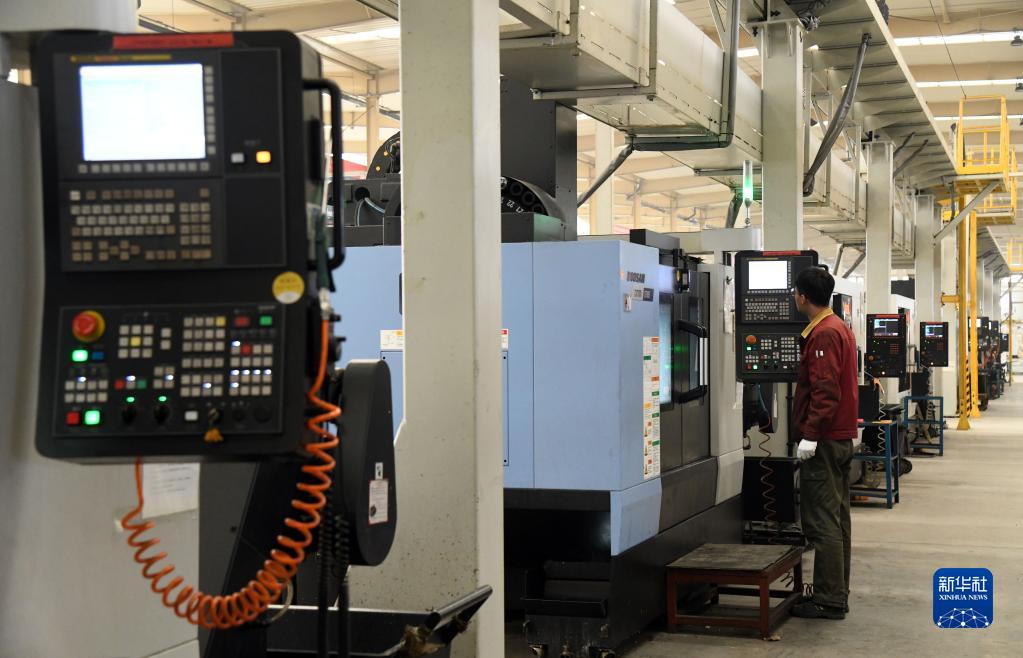 3月28日,山东省新泰市一家齿轮公司的工作人员在操控机床加工汽车零备件。
