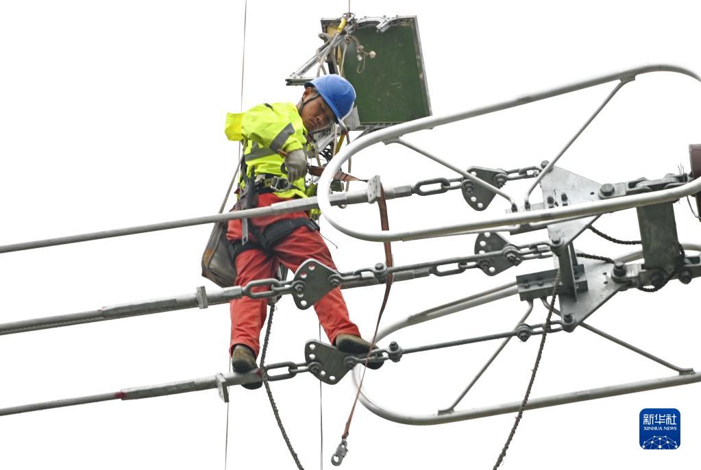 3月31日,施工人员在漳州核电500千伏四回线路上进行探伤检测作业。