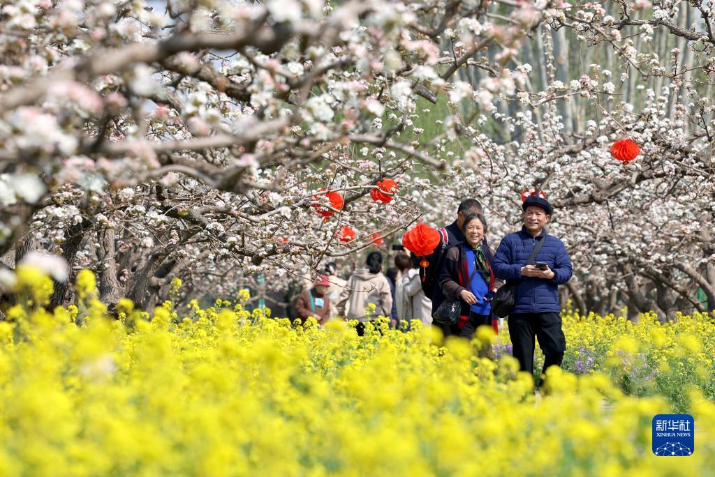 连日来,河北省石家庄晋州市17万亩梨花竞相绽放,果农抢抓农时疏花授粉,游客观景赏花,梨园内一派热闹景象。近年来,河北省石家庄晋州市以花为媒,大力发展生态农业和乡村旅游,因地制宜打造多个农旅融合综合体,为游客提供观光、休闲、娱乐等多种服务,有效助力农户增收。