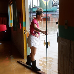 位于巴西西北边境的阿克里州近期连遭暴雨引发洪灾。由于支流水量暴增,阿克里河水位3月31日仍处高位。