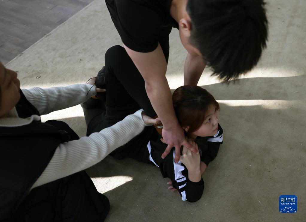 3月31日,演员在位于江苏省盐城市建湖县的江苏省杂技团训练。