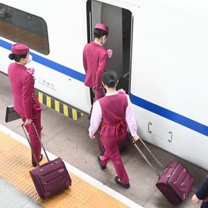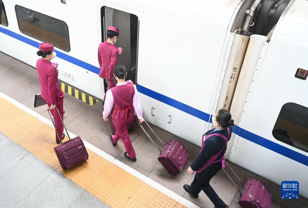 4月1日,中国铁路南昌局集团有限公司福州客运段工作人员登上从福州火车站开往香港西九龙的G3001次列车。