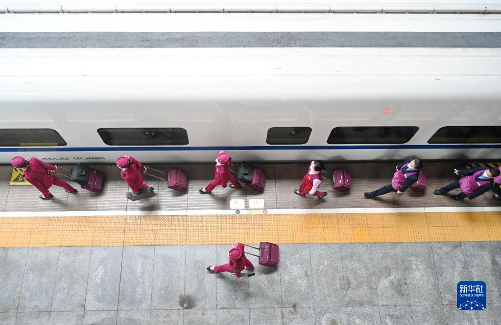 4月1日,中国铁路南昌局集团有限公司福州客运段工作人员在站台上行走,准备登上从福州火车站开往香港西九龙的G3001次列车。