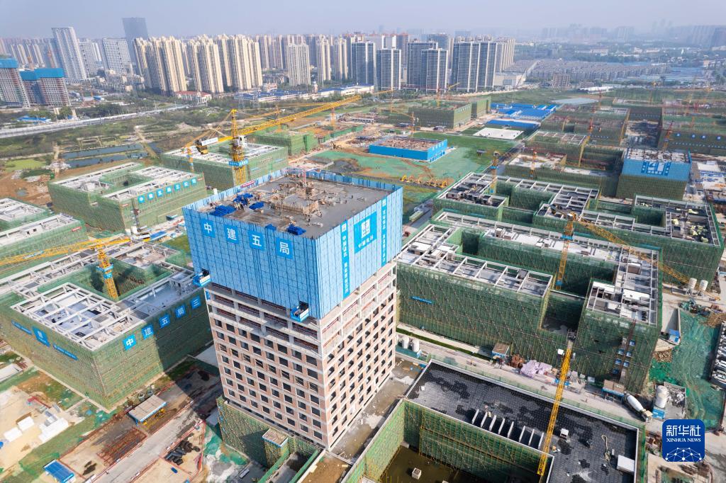这是4月1日在长沙岳麓山实验室集聚区农大片区项目建设现场(无人机照片)。