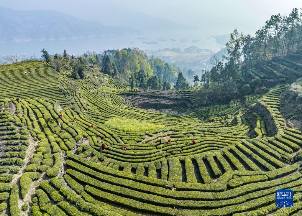 清明临近,三峡库区湖北省秭归县“明前茶”进入采摘高峰期。当地茶农在茶园内抢采茶叶嫩芽,忙碌的身影与秀美的茶园构成一幅幅美丽的图画。