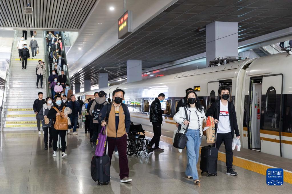 4月1日,准备乘坐G99次列车的旅客陆续进站乘车。