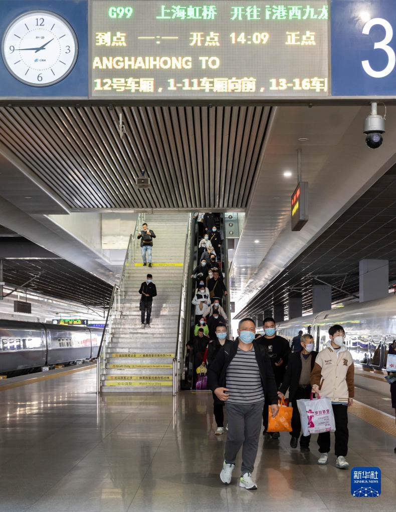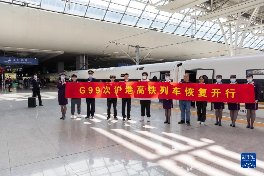 当日,上海虹桥至香港西九龙G99次列车发出,标志着沪港高铁正式恢复开行。
