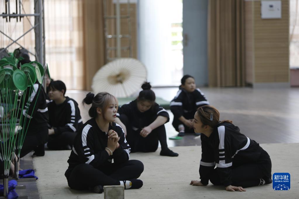 3月31日,演员在位于江苏省盐城市建湖县的江苏省杂技团训练间歇休息。