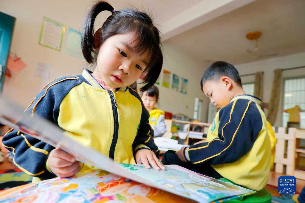 4月1日,江西省吉安市峡江县幼儿园的小朋友在阅读图书。