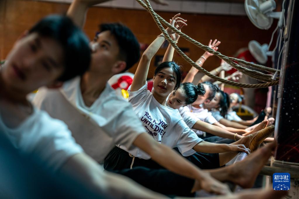耿马县民族歌舞团的演员们在练功房训练(3月23日摄)。