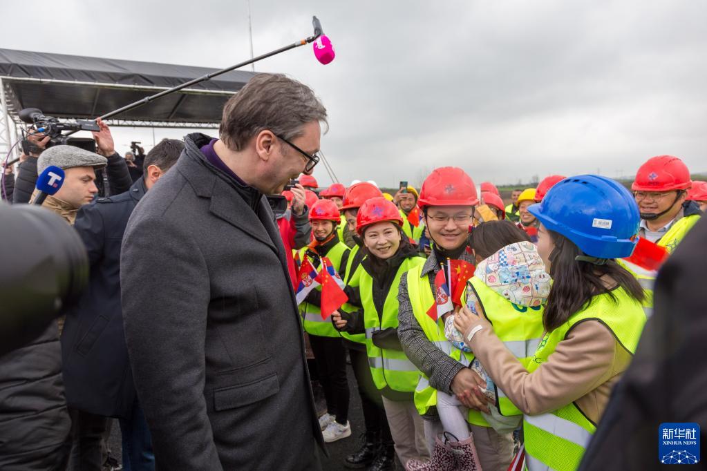 4月1日,塞尔维亚总统武契奇(左)在塞首都贝尔格莱德出席塞尔维亚E763高速公路新贝尔格莱德-苏尔钦段通车仪式。