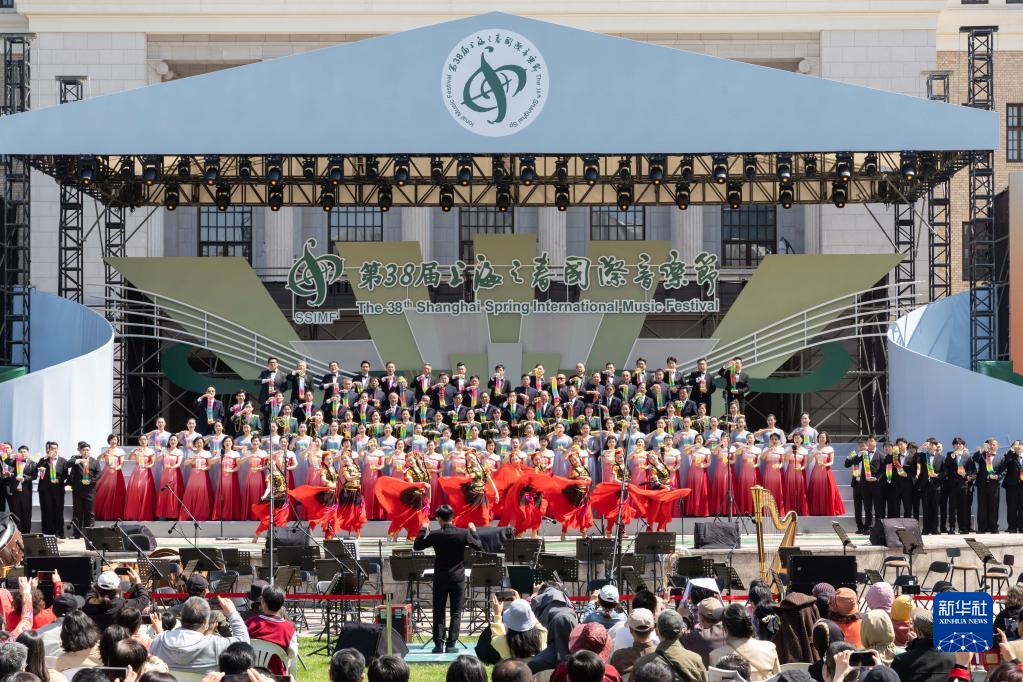 当日,第38届上海之春国际音乐节闭幕。上海城市草坪音乐广场上举行了音乐节闭幕展演。