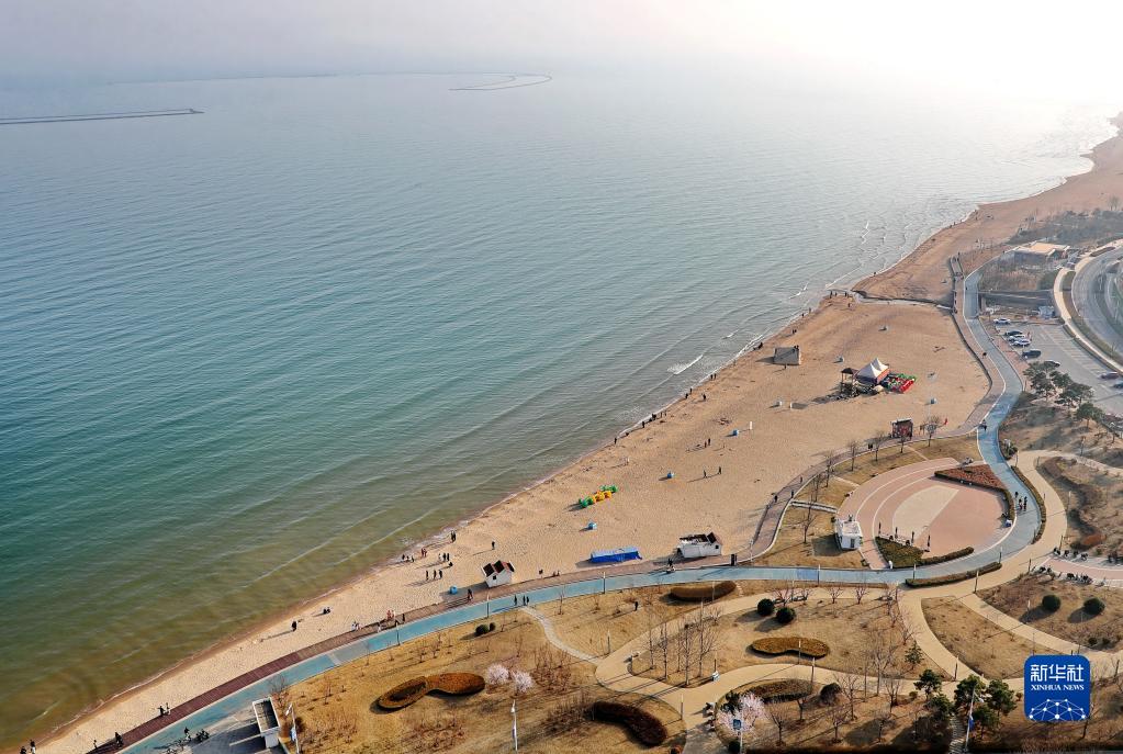 4月1日,游客在秦皇岛市海港区金梦海湾游览。