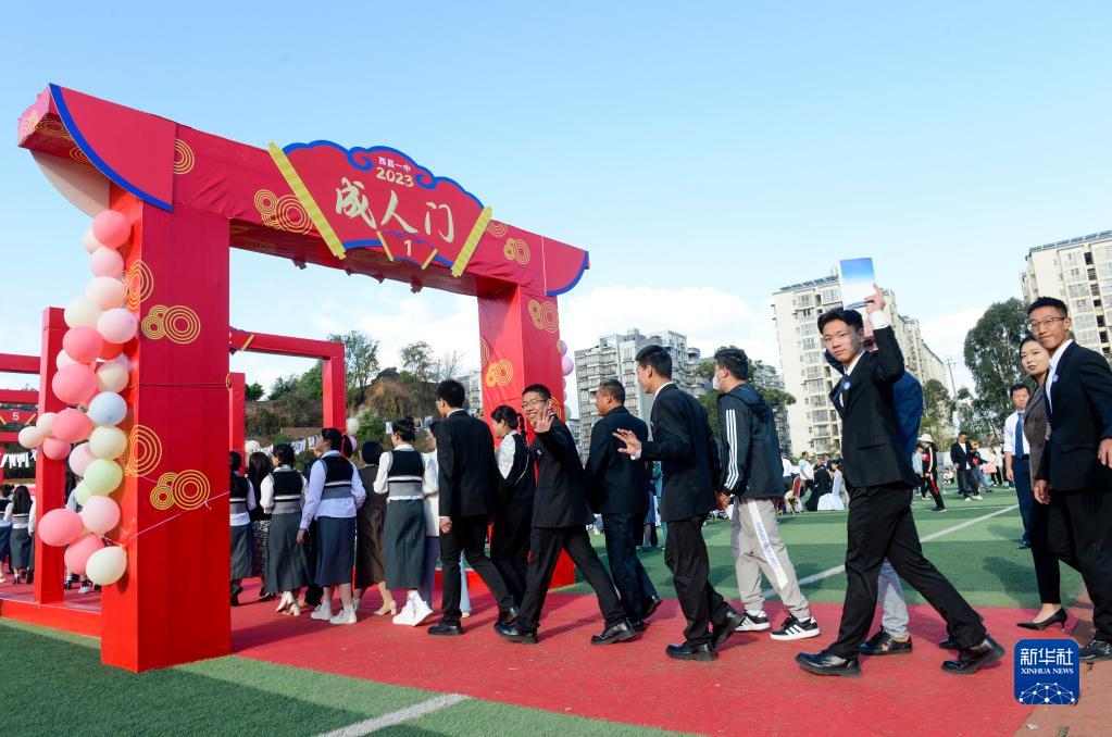 当日,四川省西昌市西昌一中举办2023年度成人礼,学生在成人礼上参加礼拜父母、跨越成人门、向未来寄语等仪式,致敬青春,开启人生新的旅程。