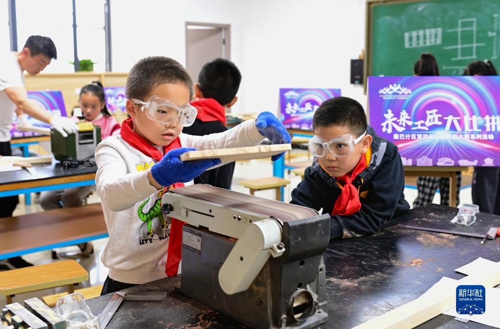 当日,内蒙古鄂尔多斯市康巴什区第四届中小学生劳动技能大赛“未来工匠大比拼”活动在康巴什区青少年发展中心举行,来自当地9所小学的100名“小工匠”在创意设计、木材加工等环节中感受劳动之美,学习工匠精神。