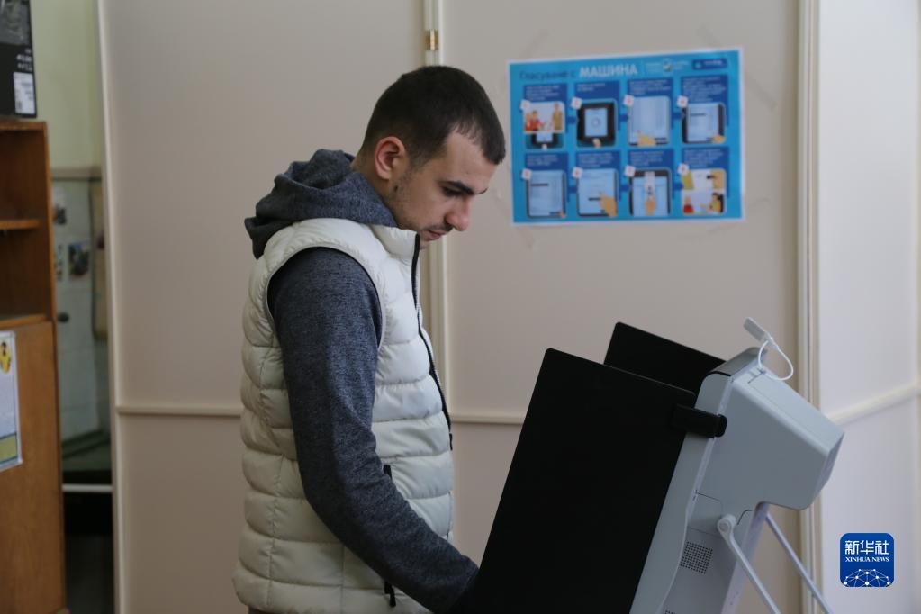 4月2日,一名男子在保加利亚索非亚一处投票站投票。