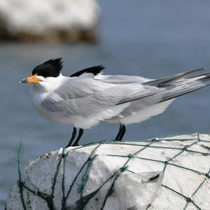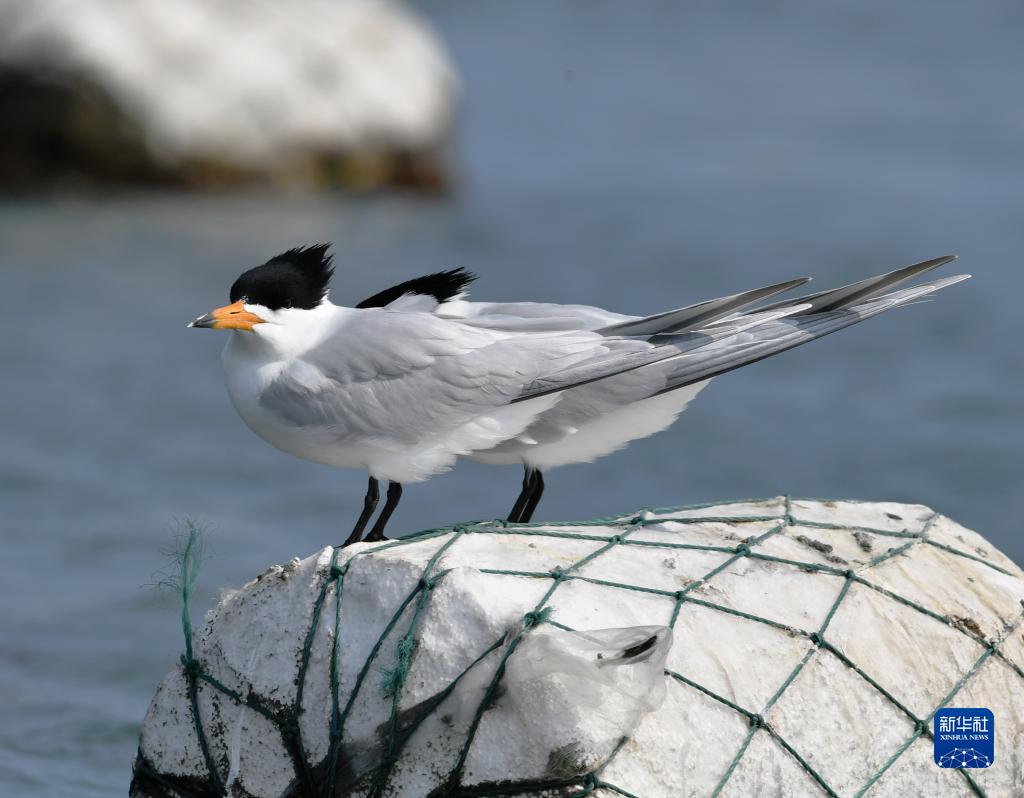 近日,几只黑嘴端凤头燕鸥在福建省晋江市围头村周边海域现身。