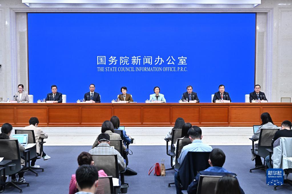 4月3日,国务院新闻办公室在北京举行新闻发布会,请国家互联网信息办公室副主任曹淑敏;中共福建省委常委、福建省人民政府常务副省长郭宁宁;中共福州市委副书记、福州市人民政府市长吴贤德;国家发展和改革委员会创新和高技术发展司负责人孙伟;科学技术部高新技术司司长陈家昌;工业和信息化部信息技术发展司负责人王建伟;国务院国有资产监督管理委员会科技创新局负责人王晓亮介绍第六届数字中国建设峰会有关情况,并答记者问。新华社记者 李鑫 摄