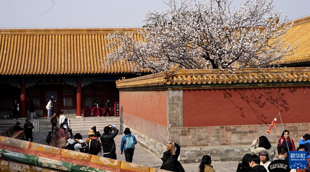 游客在参观故宫(3月19日摄)。始建于1406年的故宫是世界上现存规模最大、最完整的古代木构宫殿建筑群,位于北京中轴线的中心。1987年联合国教科文组织将其列入世界文化遗产名录。新华社记者 李欣 摄