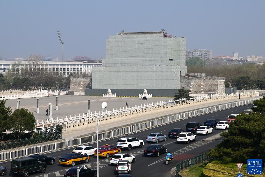 修缮维护中的永定门(3月29日摄)。新华社记者 李贺 摄