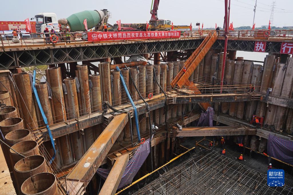 4月4日,昌九高铁扬子洲赣江公铁大桥首座主墩承台浇筑顺利完成。昌九高铁连接江西省南昌市和九江市,扬子洲赣江公铁大桥横跨赣江,集高速铁路、城市快速路、城市主干道三种交通方式于一体,是我国首座时速350公里多功能公铁混层合建桥梁。