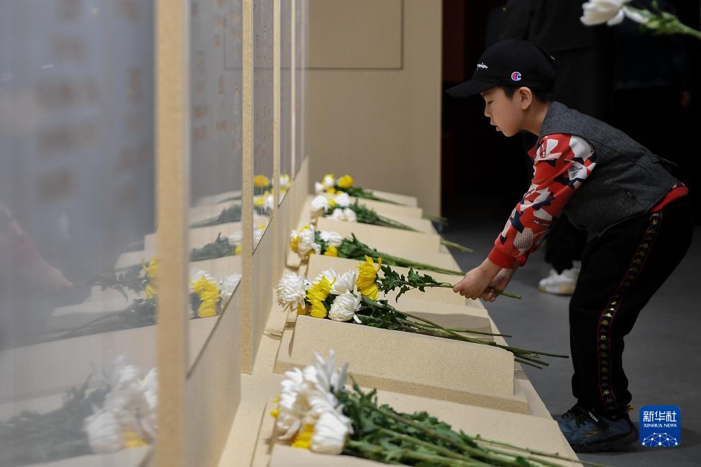 4月4日,学生在长春伪满皇宫博物院东北沦陷史陈列馆向抗日英烈敬献鲜花。