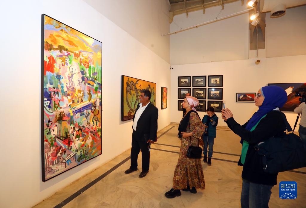 由中国文化和旅游部、埃及文化部、阿拉伯国家联盟秘书处、中国驻埃及大使馆共同主办的“艺汇丝路——中阿知名艺术家采风作品展”暨中阿艺术家对话沙龙活动3日在埃及开罗举行。新华社记者 隋先凯 摄