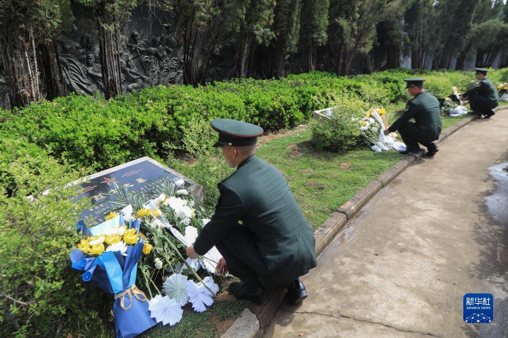 4月4日,第83集团军某旅到洛阳市朝阳烈士陵园开展祭扫活动,官兵向英烈敬献鲜花。