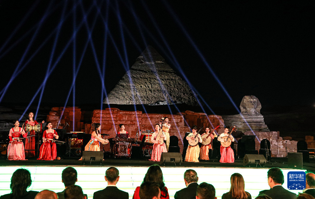 3日晚,由中国文化和旅游部、埃及旅游和文物部、中国驻埃及大使馆共同主办的中国-埃及民族音乐会在吉萨金字塔景区举办。中国中央民族乐团艺术家和埃及民族音乐家联袂为现场观众献上精彩演出。