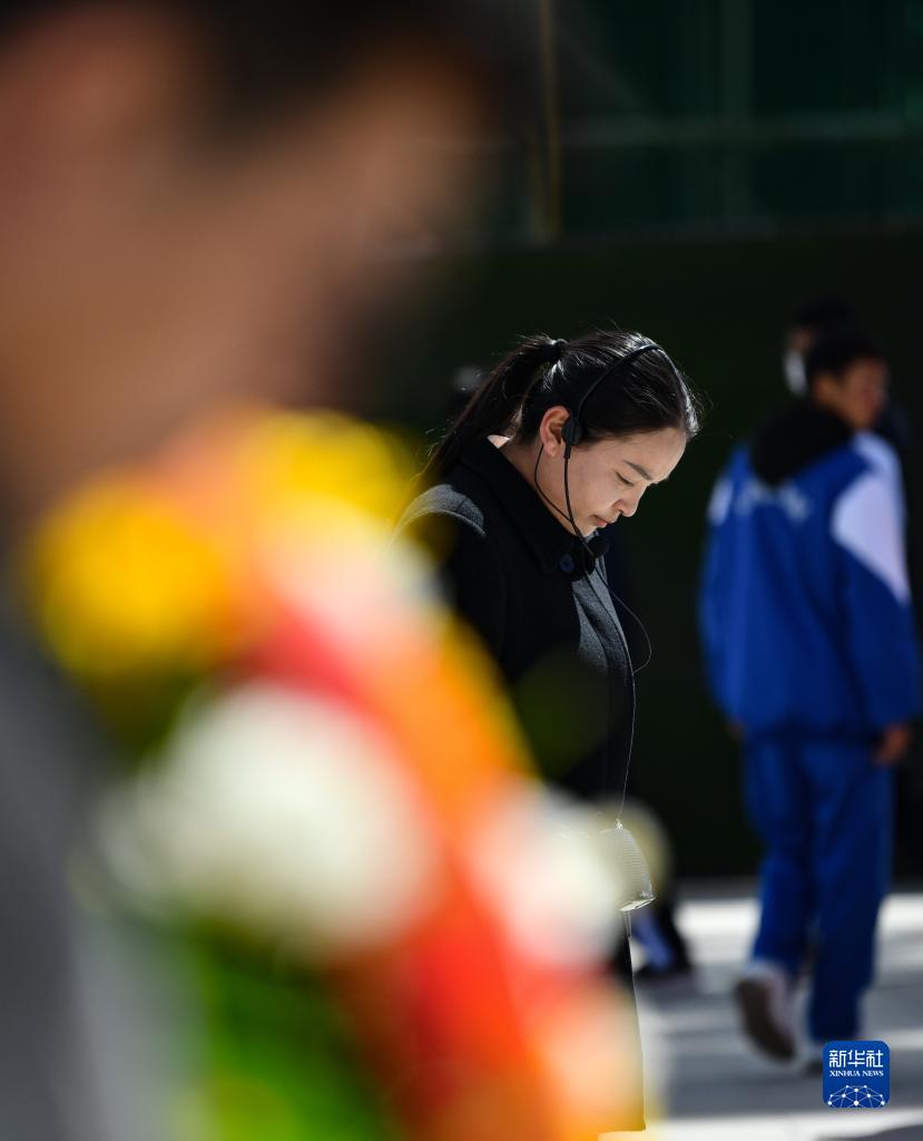 在拉萨烈士陵园,索朗拉姆主持默哀仪式(4月4日摄)。