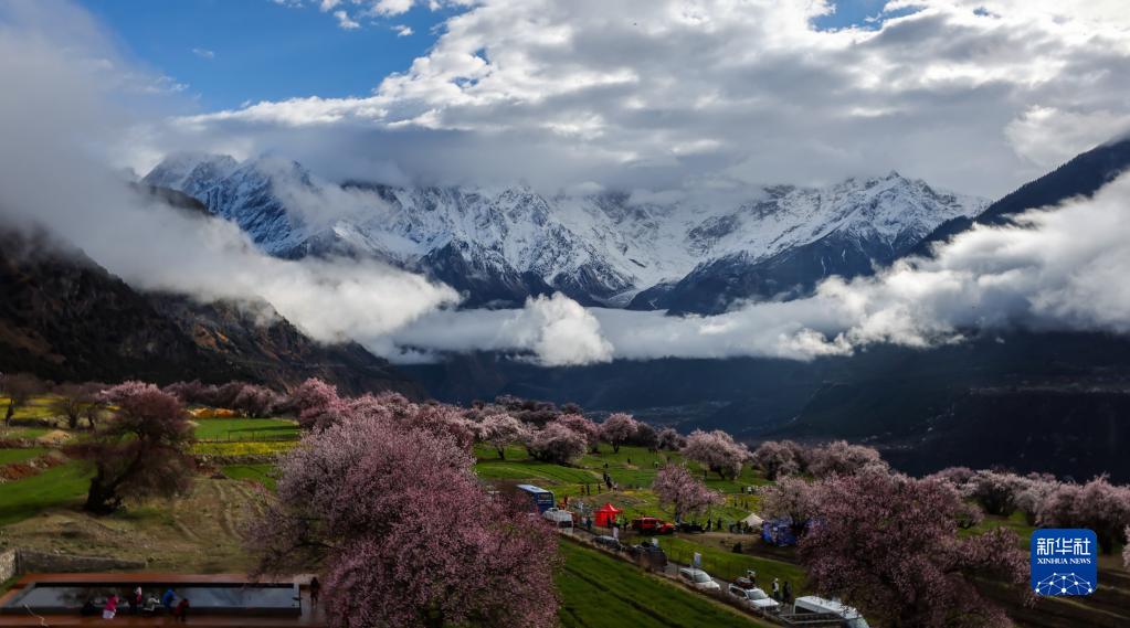 清明时节,西藏米林市派镇索松村的桃花进入盛放期,吸引游客前来观赏、拍摄。