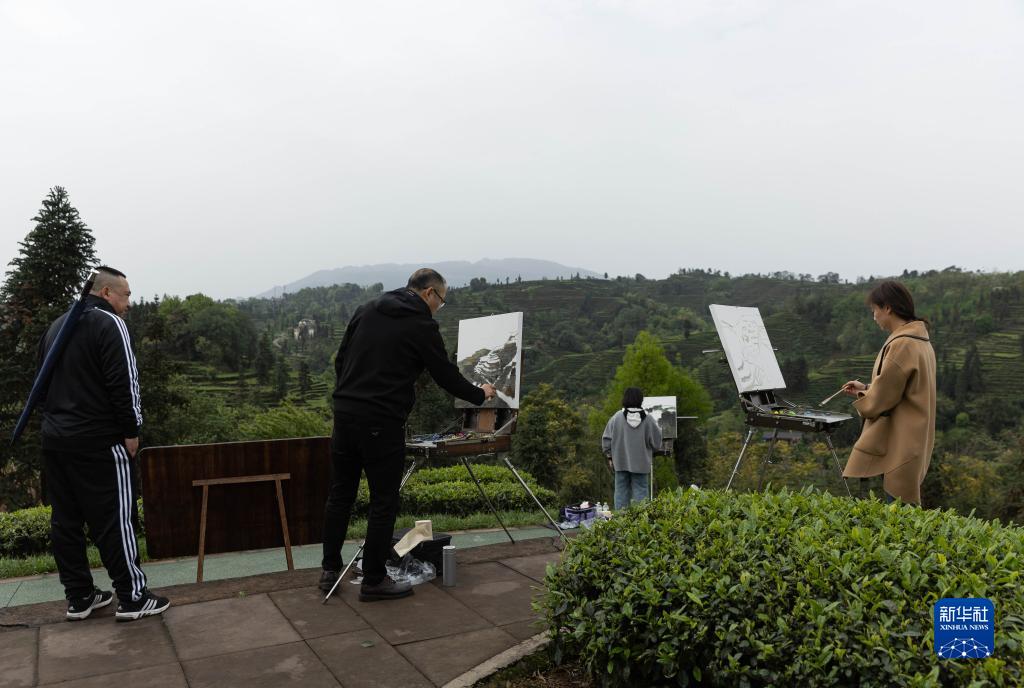 4月6日,几名绘画爱好者来到青杠坪村茶园里写生。
