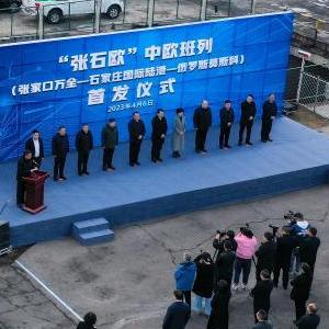 当日,河北省张家口市中欧班列首发仪式在万全西站举行。首发班列装载有汽车配件等商品,将从内蒙古二连浩特口岸出境,驶往莫斯科。这是张家口市开行的首趟中欧班列,开启了该市与欧洲经贸往来的高效陆路新通道。