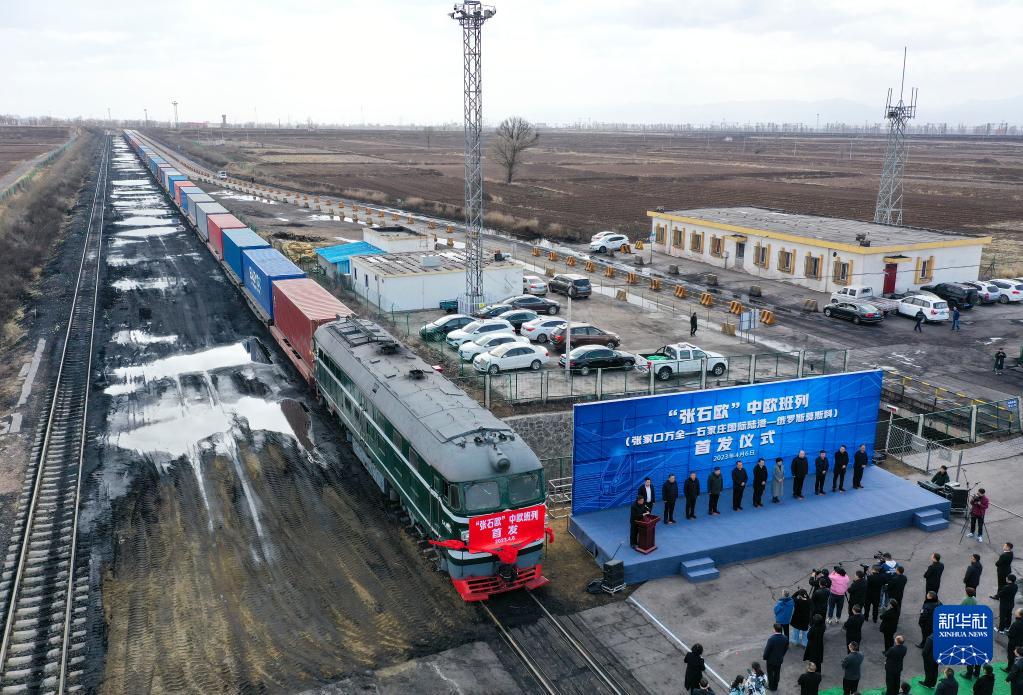 当日,河北省张家口市中欧班列首发仪式在万全西站举行。首发班列装载有汽车配件等商品,将从内蒙古二连浩特口岸出境,驶往莫斯科。这是张家口市开行的首趟中欧班列,开启了该市与欧洲经贸往来的高效陆路新通道。
