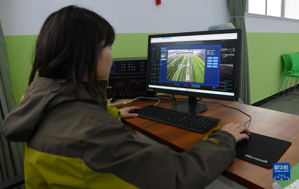 4月6日,在江西省南昌县蒋巷镇大田农社,智慧农业平台工作人员通过系统实时查看育秧大棚情况。