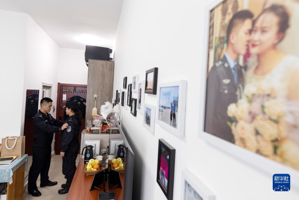 4月4日,崔洪武(左)帮助刘欣整理着装。新华社记者 费茂华 摄