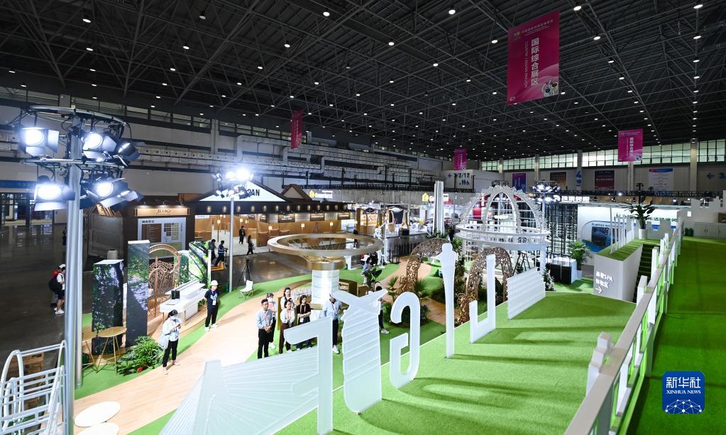 4月7日,在海南国际会展中心,部分展台已陆续搭建完成。